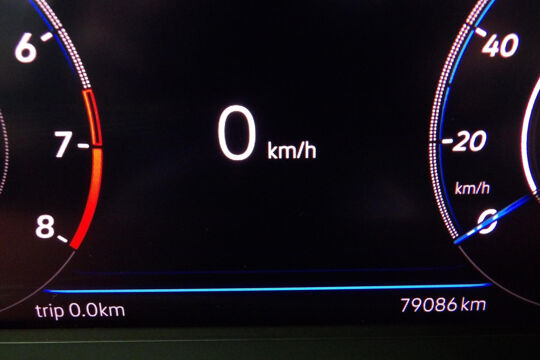 Instrumentenpaneel met elektronische snelheidsmeter, kilometer- en ritafstandteller, toerenteller